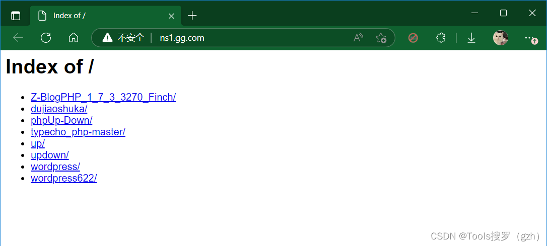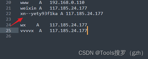 如果想访问到自定义的域名,如qq.com,gg.com,需要添加如上边所示的gg.com.zone
