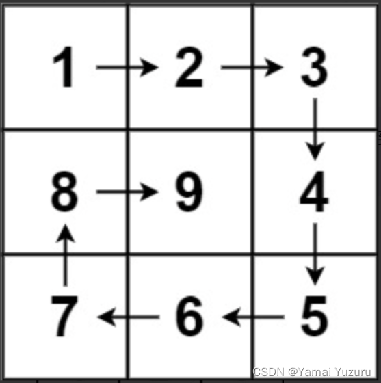 输出:[[1,2,3],[8,9,4],[7,6,5]]