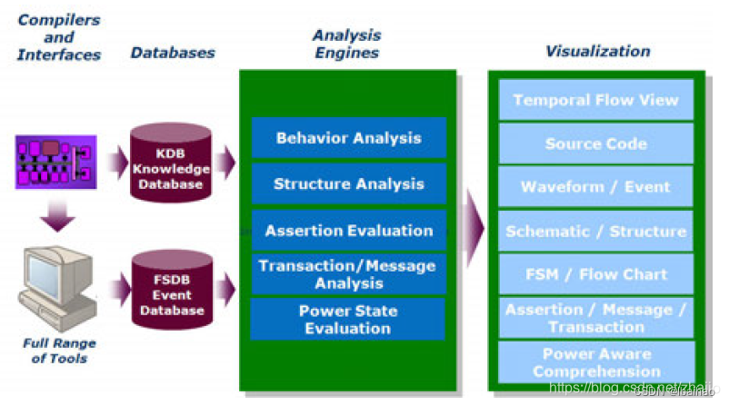 在编译设计时,Verdi平台使用其内部综合技术识别和提取有关设计的特定结构,逻辑和功能信息,并将生成的详细设计信息存储在KDB中