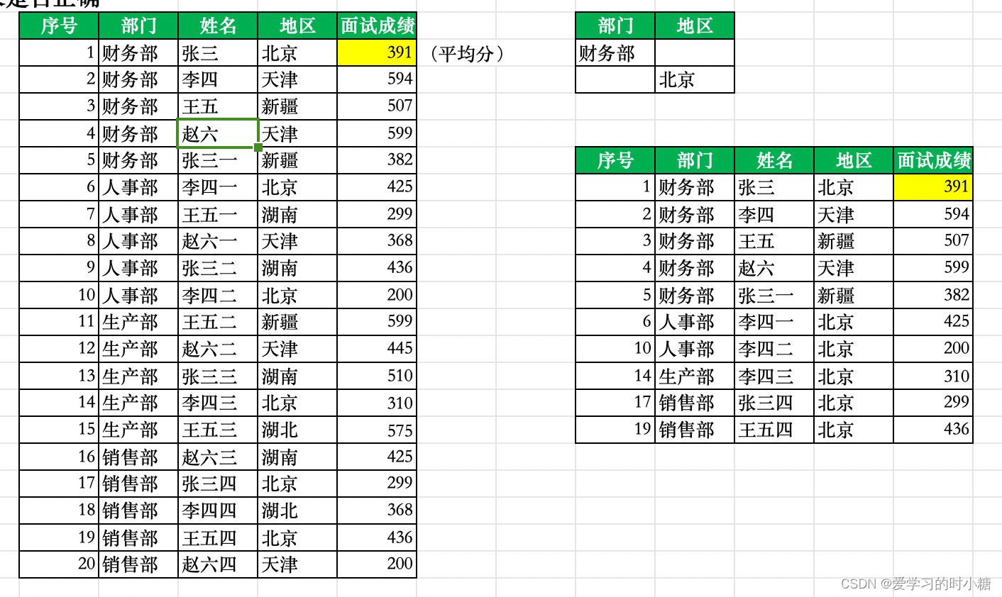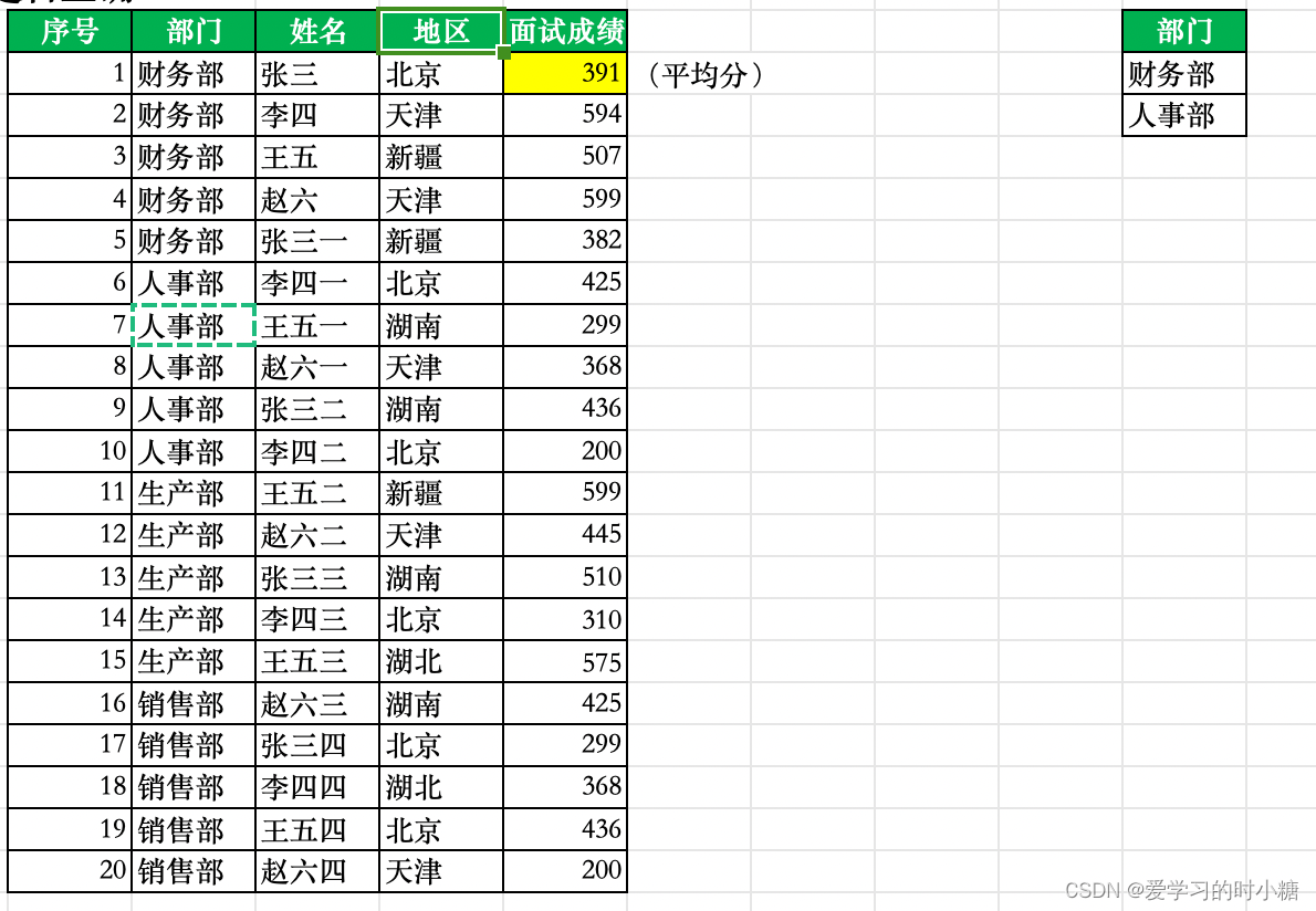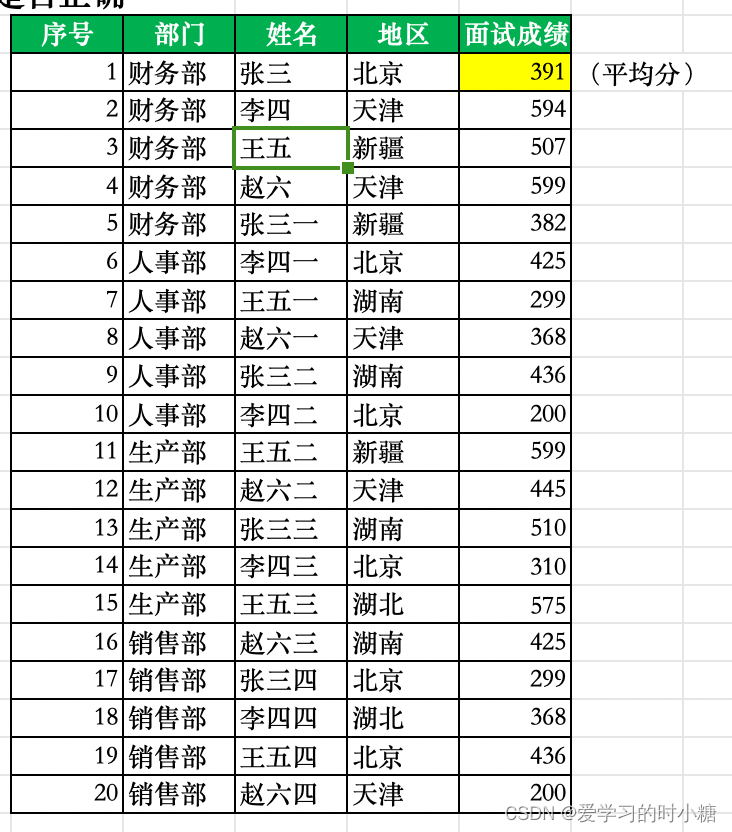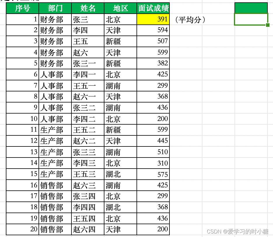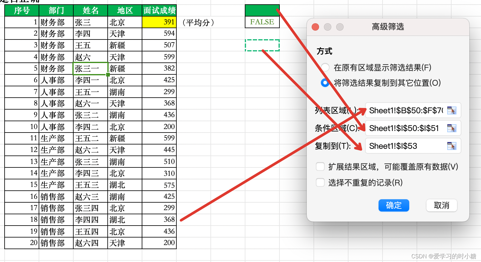 Q:想要筛选出面试成绩大于平均值的面试者,并将其信息粘贴在其他区域