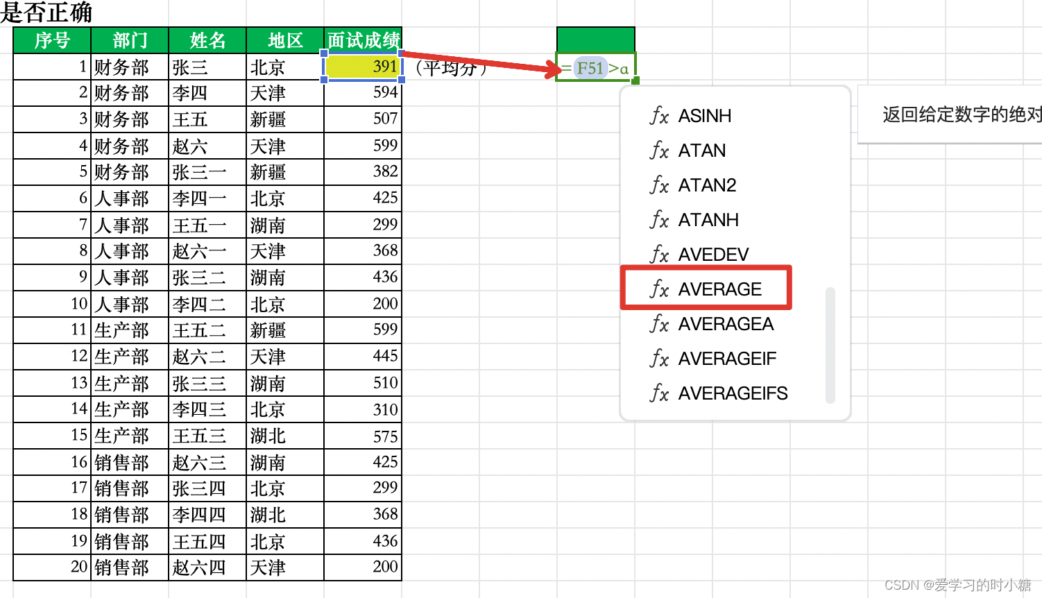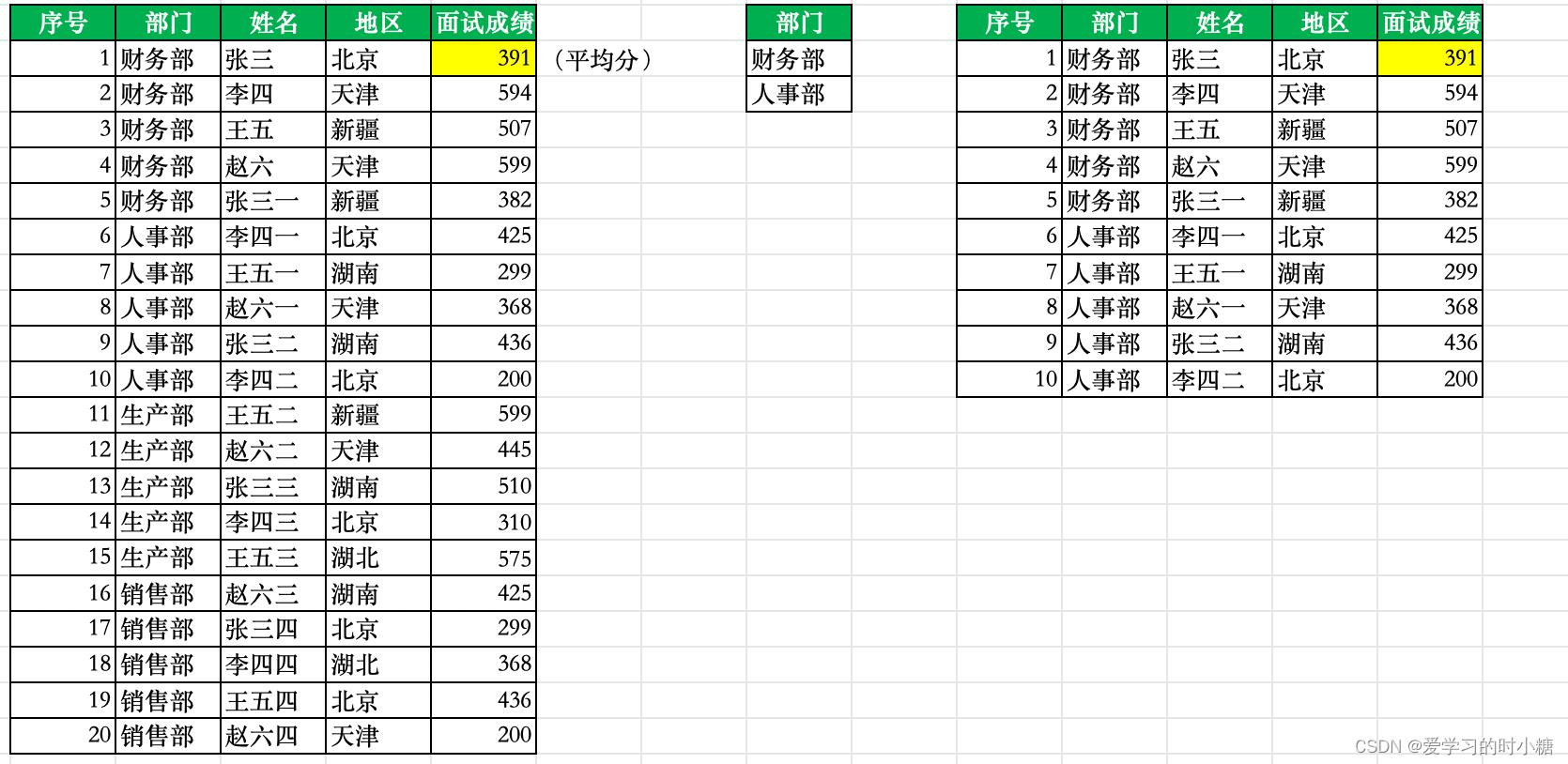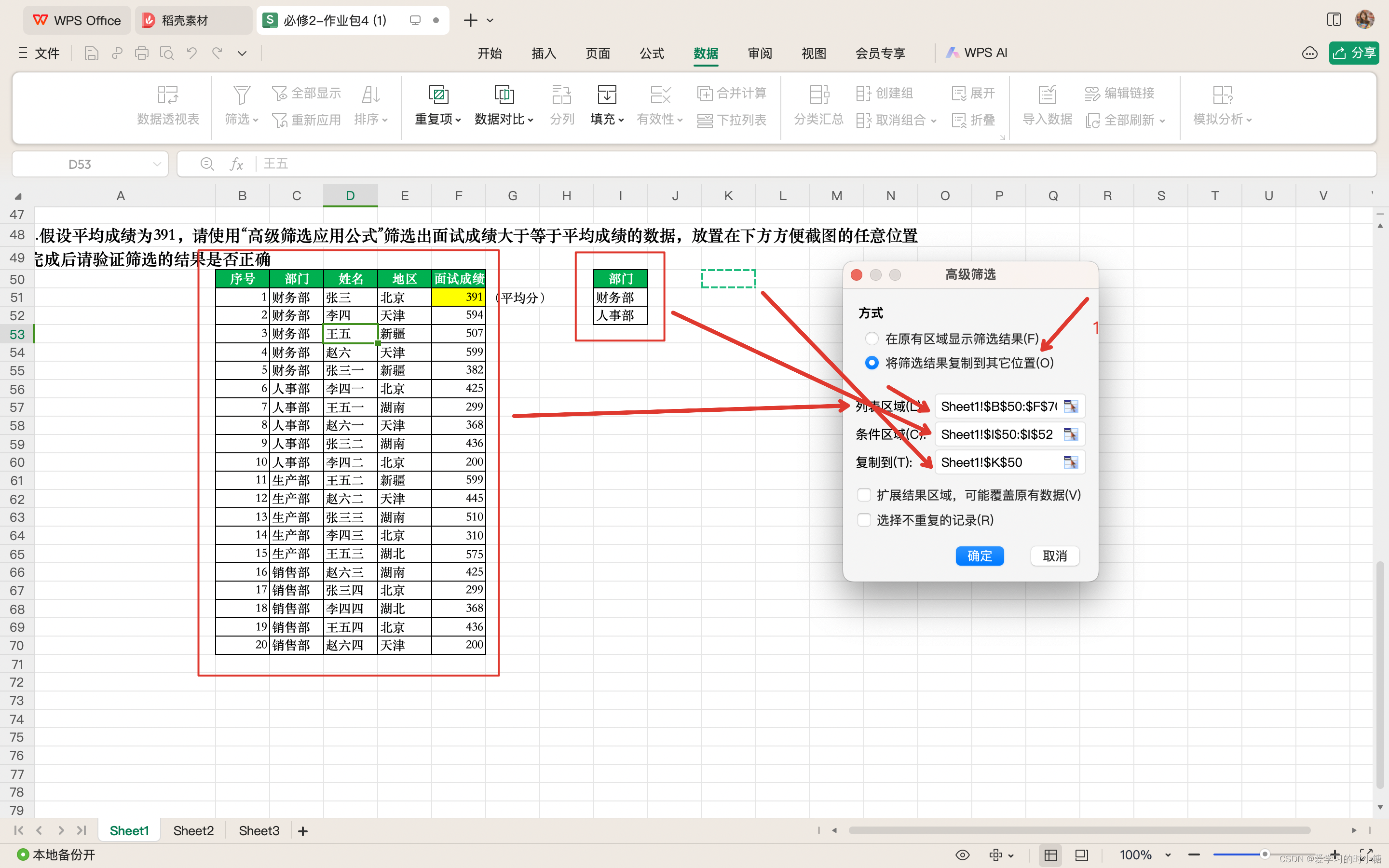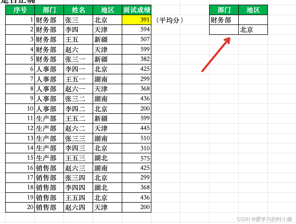 Q:想要筛选出面试成绩大于平均值的面试者,并将其信息粘贴在其他区域
