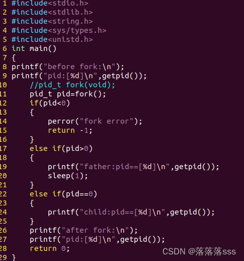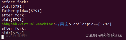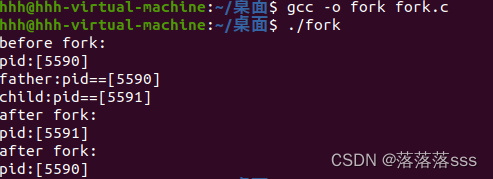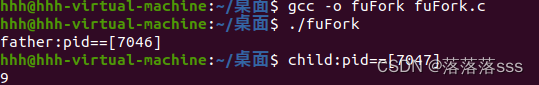 26 printf("child:pid==[%d],fpid==[%d]\n",getpid(),getppid());