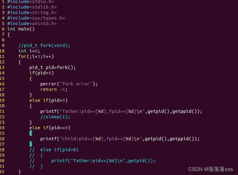 21 printf("father:pid==[%d],fpid==[%d]\n",getpid(),getppid());