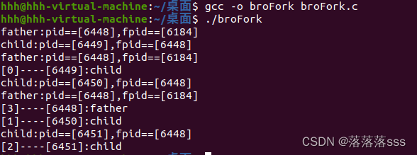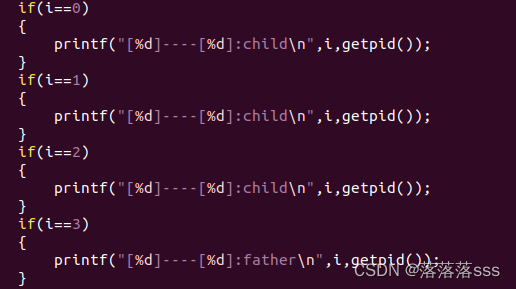 47 printf("[%d]----[%d]:father\n",i,getpid());