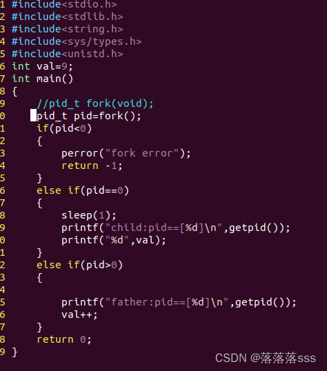 结果发现子进程中val==9,由此当父进程修改val的值时,父子进程不再共享全局变量。