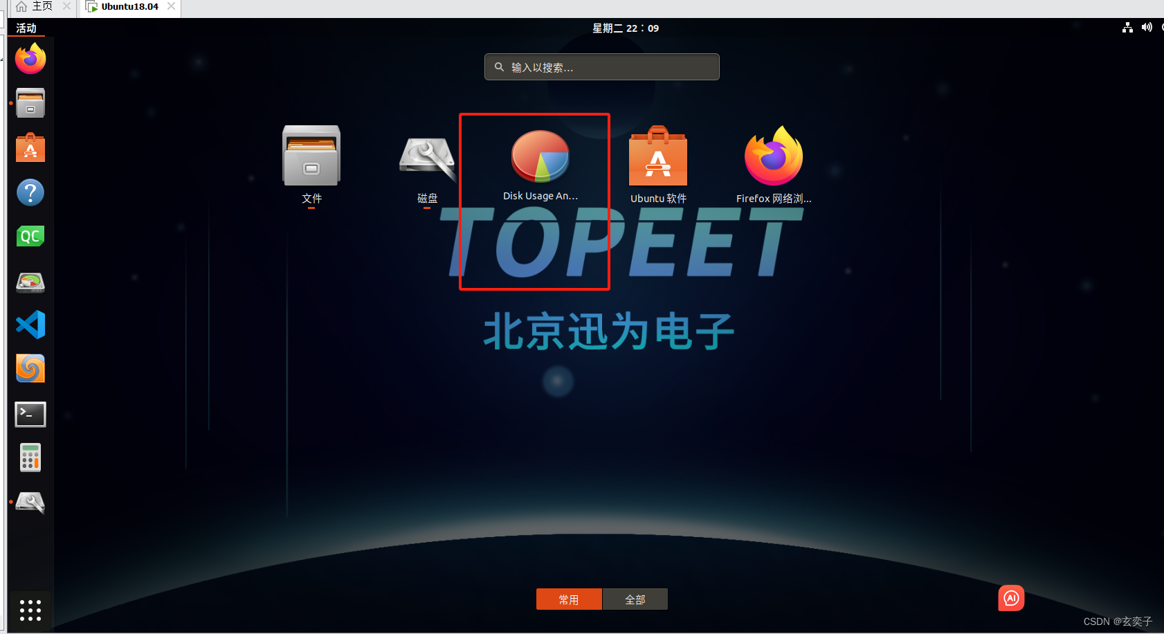在ubuntu搜索框直接搜索 Disk Usage Analyzer