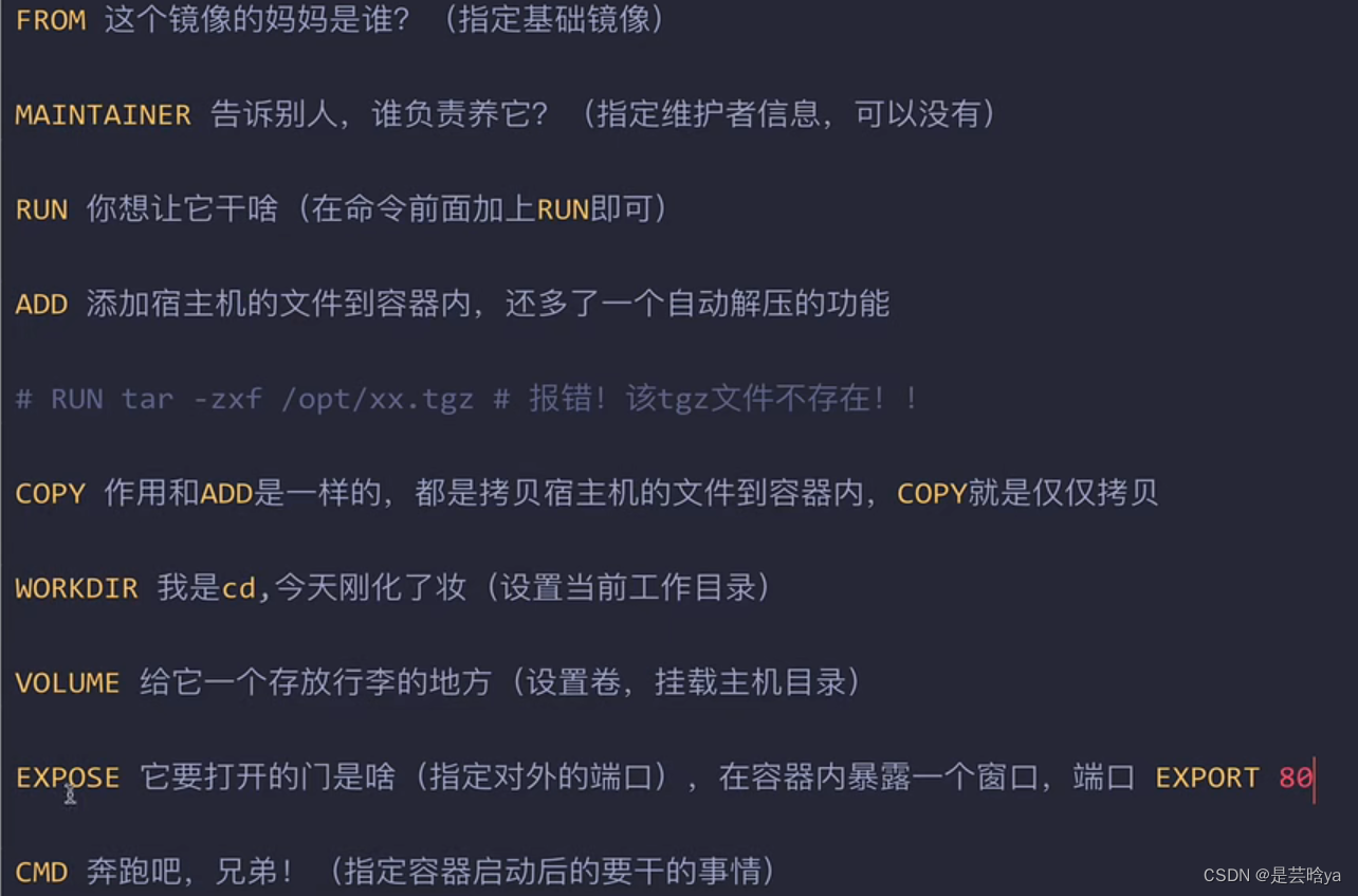 Dockerfile,将你部署项目的操作,写成一个部署脚本,这就是dockerfile,且该脚本还能够构建出镜像文件
