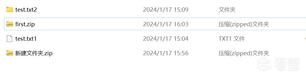 1.创建一个test.txt1文件和一个test.txt2文件夹,在test.txt2文件夹中创建一个test.txt3.cmd,写入打开计算机,然后打包成zip文件。