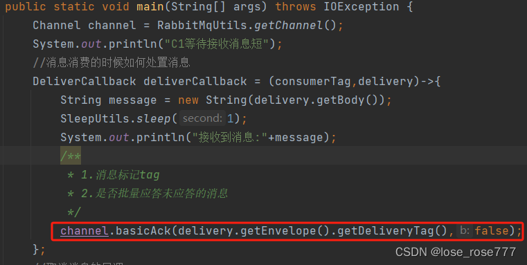 DeliverCallback deliverCallback = (consumerTag,delivery)->{