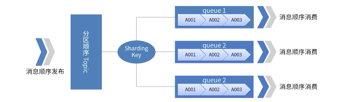 适用场景:性能要求高,根据消息中的 Sharding Key 去决定消息发送到哪一个 Queue,一般分区有序就可以满足我们的业务要求,同时性能高。