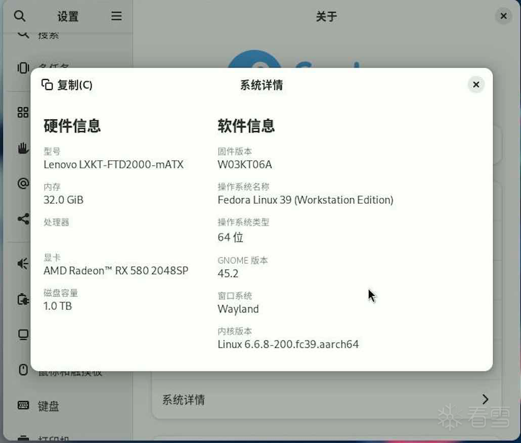 操作系统:Fedora Workstation 39