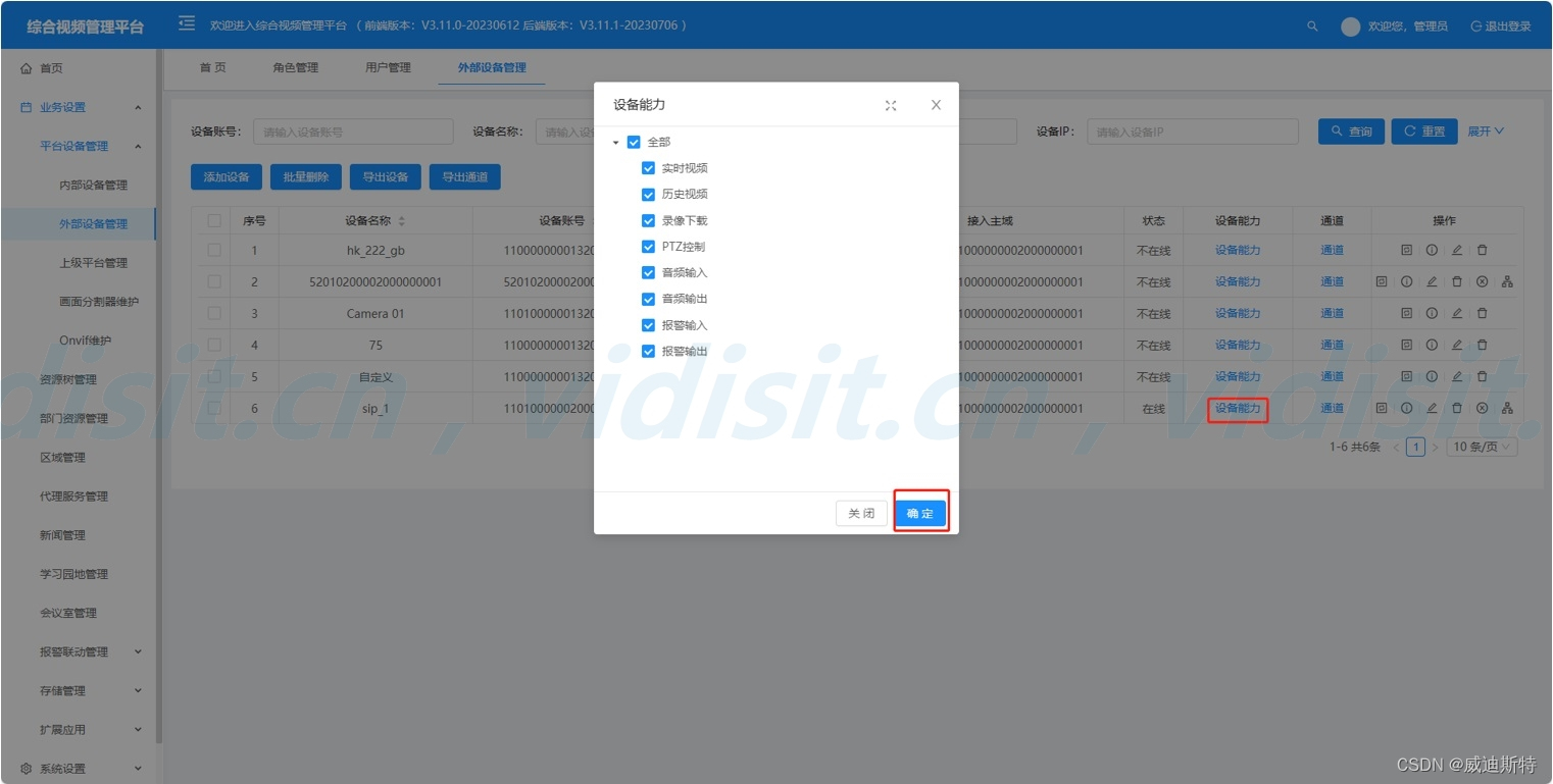 PS2:通道保存好后进入设备能力确认勾选必要的能力,避免客户端无法看到视频的情况。