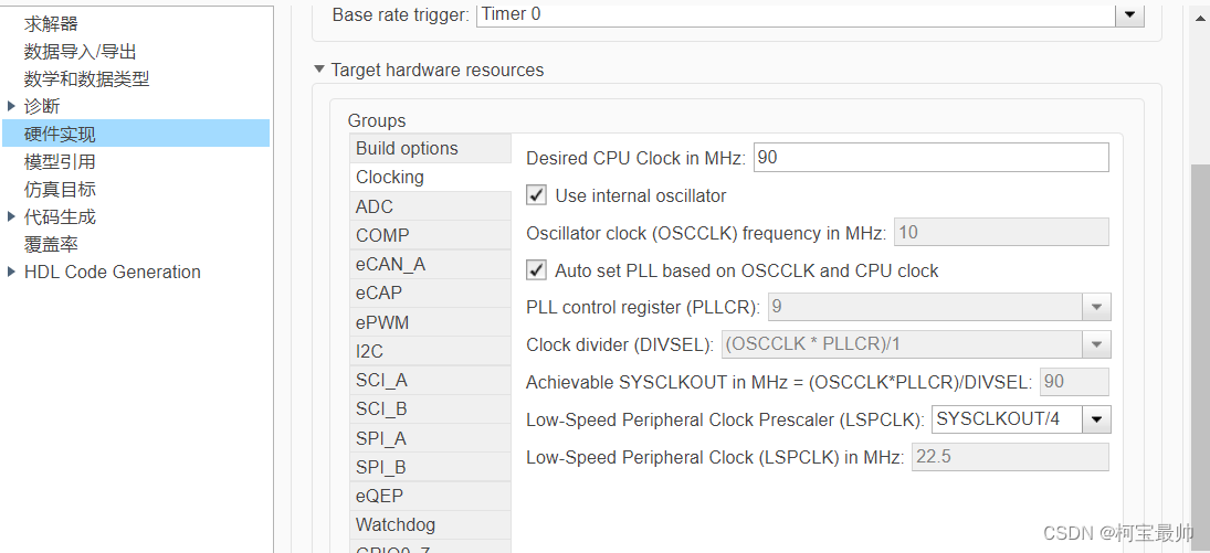 Solver设置定步长为0.5s,时钟90MHz,LSPCLK低速时钟外设4分频:
