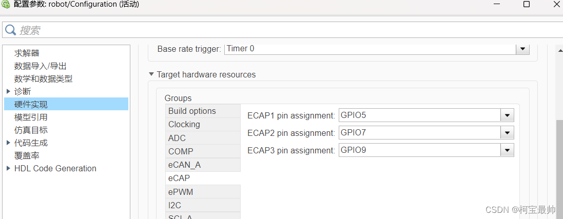 eCAP的ECAP1 pin assignment引脚选择GPIO5: