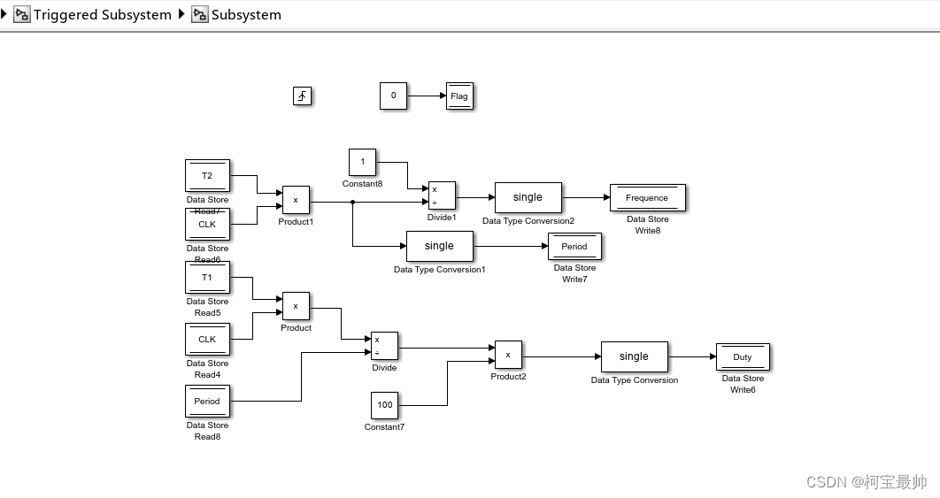 上图其实是放在Triggered Subsystem(while)里的 Subsystem的