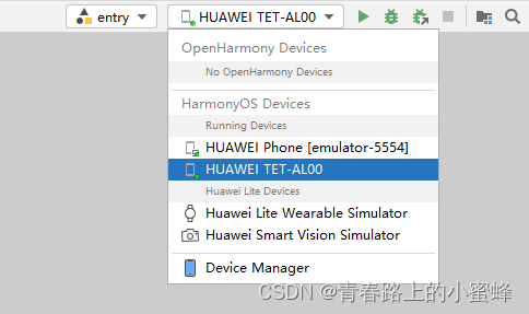 1、连接真机设备,确保DevEco Studio与真机设备已连接,真机连接成功后如下图所示: