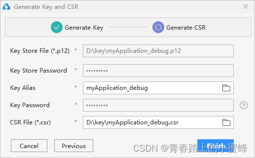 5、在Generate Key and CSR界面,设置CSR文件存储路径和CSR文件名
