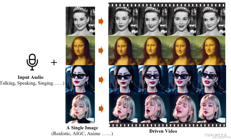 阿里发布了一个大模型的展示页面,提出了一个名叫 EMO(Emote Portrait Alive) 的大模型,一种富有表现力的音频驱动的基于人物肖像生成视频的框架。具体来讲就是,输入单个参考人物肖像图像和语音(例如讲话或者唱歌等),可以生成具有丰富的面部表情和各种头部姿势的声音头像视频,同时可以根据输入视频的长度生成任意持续时间的视频