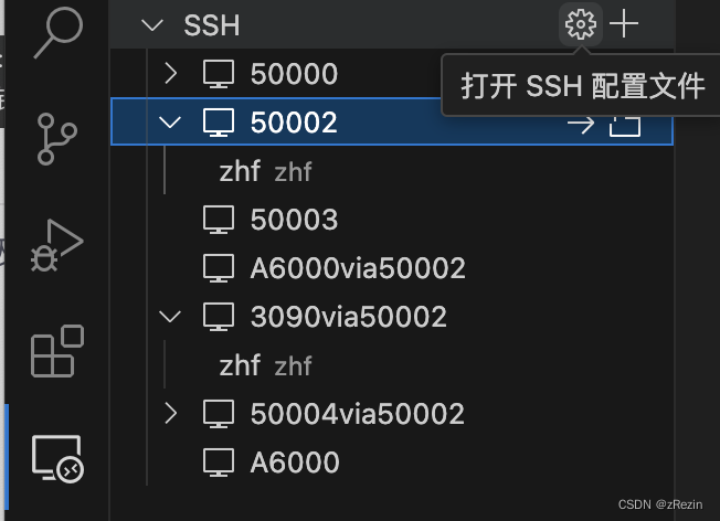 设置完成后保存,刷新后远程栏出现3090via50002,这就是你通过跳板机连接的按钮。点击后输入两次密码:第一次密码是跳板机的密码,第二次密码是目标机的密码。