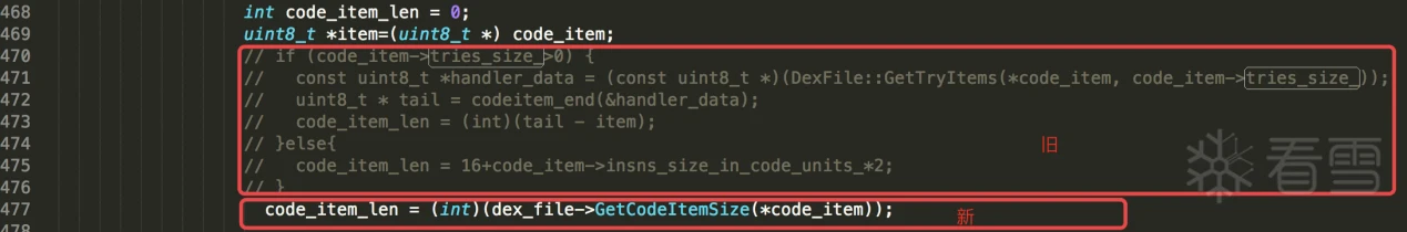 迁移到Android11,需修改FART 获取 codeitem长度部分代码: