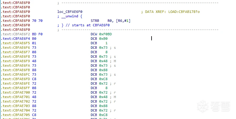 0xcbffd60c: 0170 strb r1, [r0] ç开始把so头清零 nop掉代码