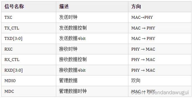 RGMII(Reduced Gigabit Media Independant Interface),精简GMII接口。相对于GMII相比,RGMII具有如下特征: