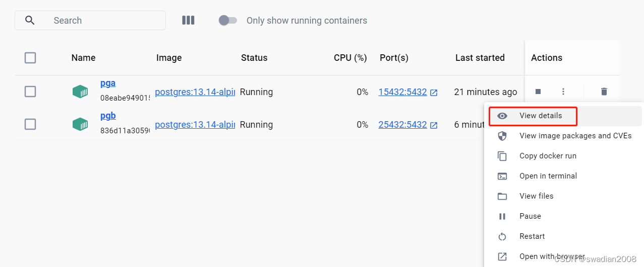 docker desktop 对展示容器有非常方便的支持,如下图所示: